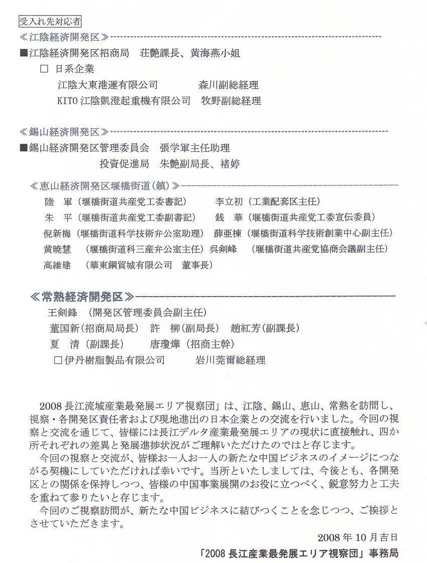2008年錦秋の10月に企業家の皆様と中国揚子江エリアの再発展地域の視察を行いました。![]() |